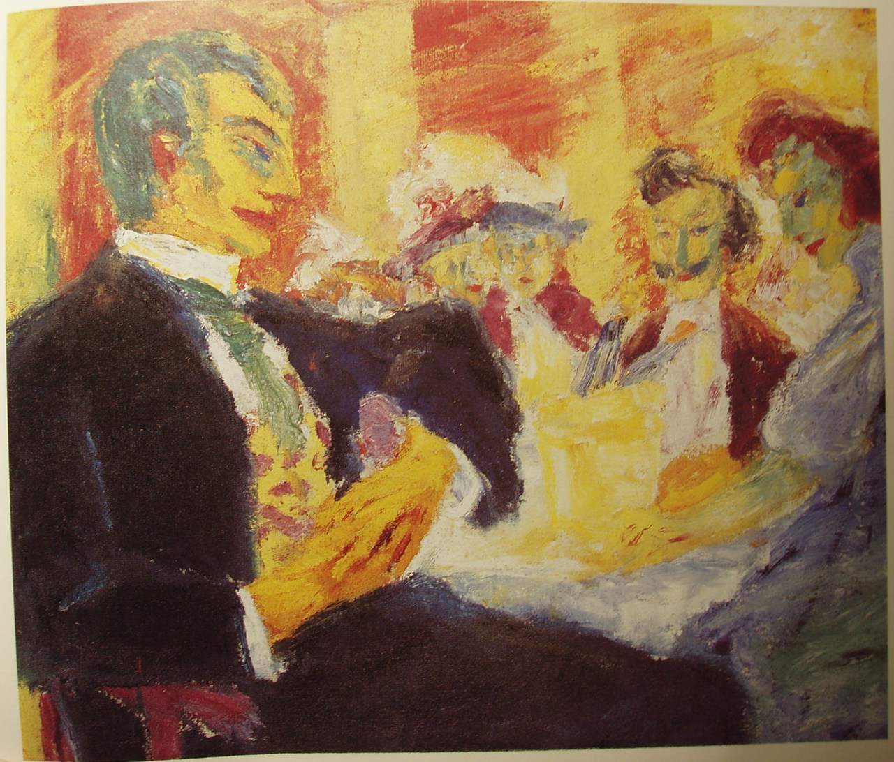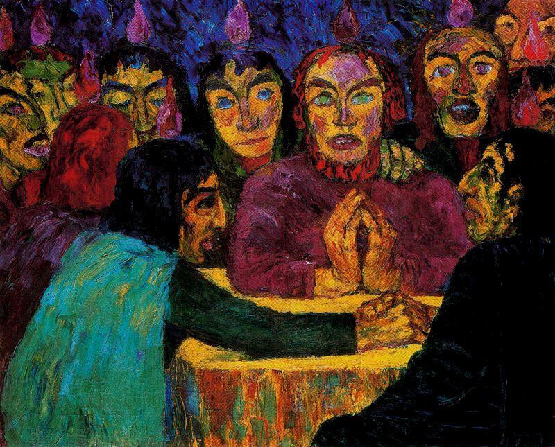 埃米尔·诺尔德(Emil Nolde,1867—1956)是德国表现主义艺术的先驱。他的艺术典型地体现出德国表现主义追求“内在冲动”渲泄的艺术倾向。他的画注重情感表现,色彩浓重,造型简洁,人物动态强烈。
