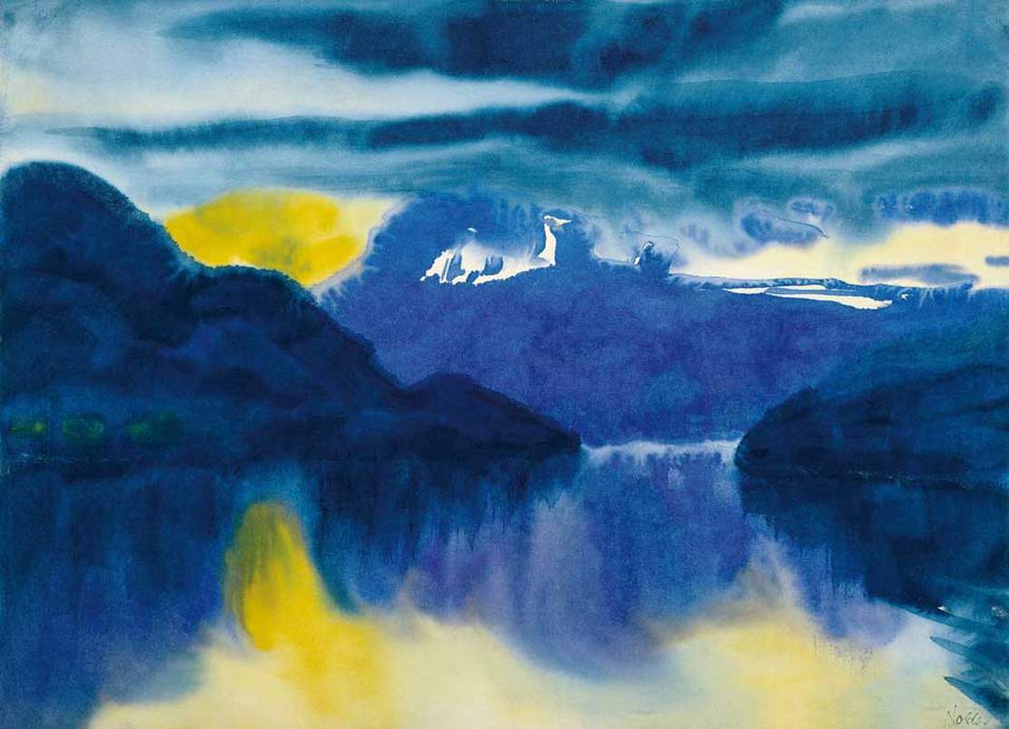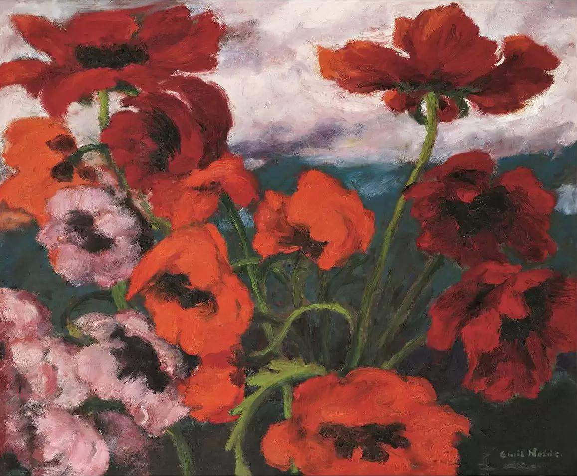 他以印象派的技法作画,画面色彩明快强烈,呈现出某种神奇的光感与张力。1906年,诺尔德应施密特的邀请加入桥社,然而孤僻的性格使其一年多之后便离开该社团,转而沉迷在他那独特的充满宗教幻想的表现主义艺术天地之中。