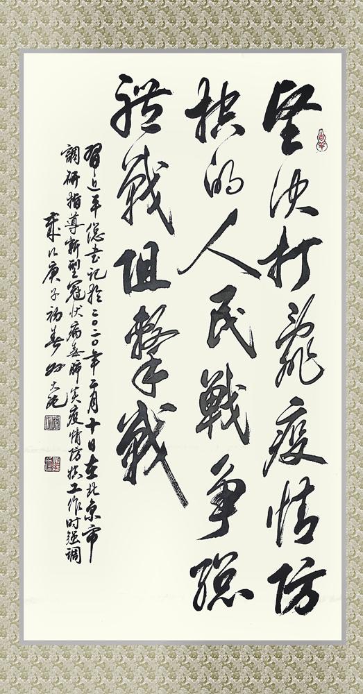 当前,全国上下团结一心,共同抗“疫”,站在疫情面前的不仅仅是一批医护人员,也不在是一座城市,而是一个国家和14亿人民。在抗击疫情的战“疫”中,广大艺术家身体力行,践行“人民艺术为人民”的使命与担当,用心中的爱、手中的笔记录感人的瞬间,讴歌抗“疫”英雄,致敬人间大爱,共谱爱的赞歌。书法家孙大纯先生就是其中一位,这段时间,孙大纯先生居家创作,把对疫情的关切、对战斗在抗击疫情一线的医护人员和军人不畏个人生死的致敬、对许许多多无私奉献的志愿者的关爱、对社会各方驰援的由衷感激,都转化为一幅幅遒劲有力的书法作品,孙大纯先生希望通过书法作品传递更多的人间真情,为武汉加油、为中国加油!