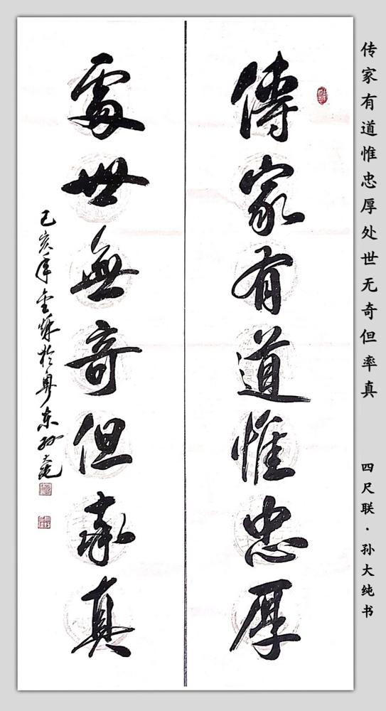 孙大纯,广东潮州人。南方书画院理事。六岁习字,楷书初从柳公权,行书研习二王,对传统书法有一定的功底,又广泛猎取吸收古今名碑名帖牌匾题字等。十六岁写过对联,二十二岁题字寺庙及牌匾。