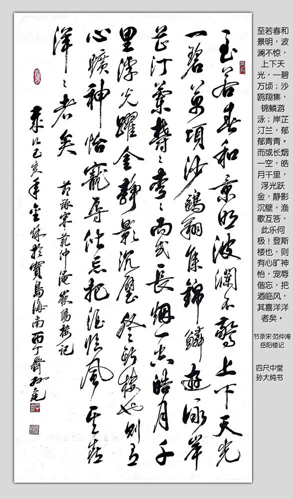 每一幅优秀的书法作品,都凝聚着书法家孙大纯先生对医务人员的关爱,也体现了孙大纯先生高超的艺术文化造诣,其艺术书法以行草见长,并善于书写较大字体,字体结构厚实工整,用笔流畅舒展,遒劲有力,特别注重行气与章法的呼应,气势连贯回绕,通篇恣意纵情,笔划之间尽显从容蕴藉,真可谓流水行云,潇洒出尘。