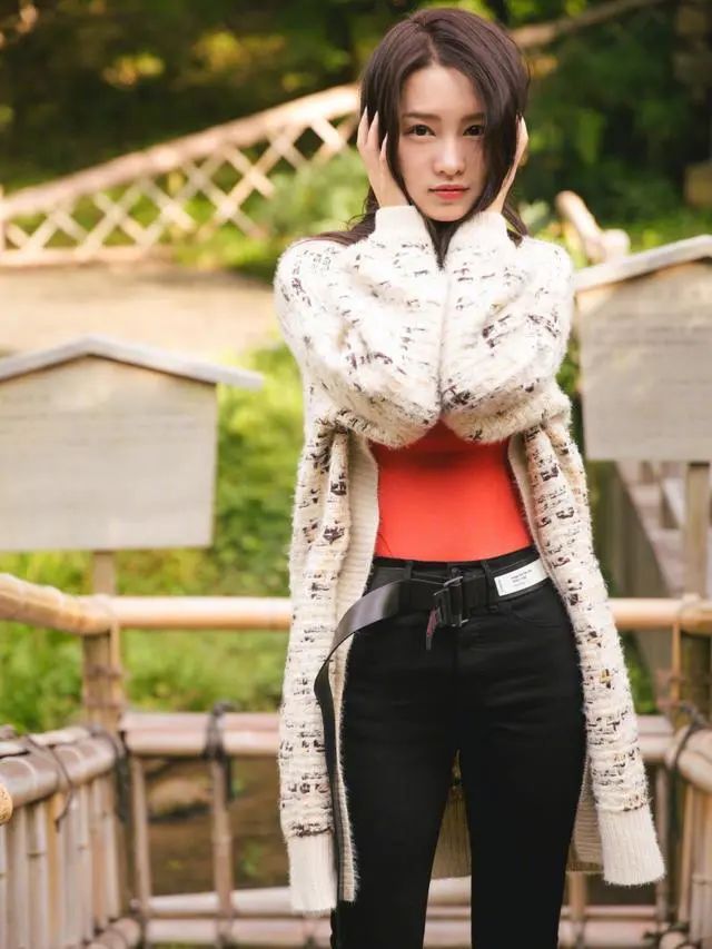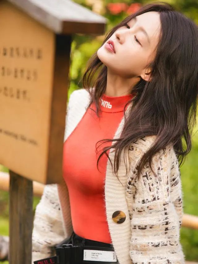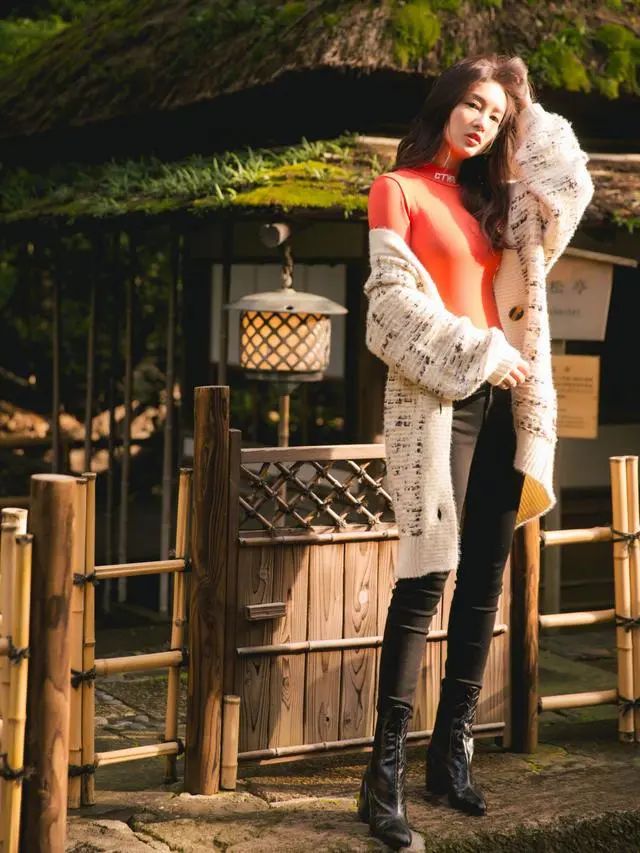像李沁这样的时髦精,早在之前的写真造型中就演绎过类似的打底衫。李沁这一件同样是橘色的打底,不同的是这件是半高领的设计。半高领的设计能很好地延伸颈部线条,也比较容易驾驭。