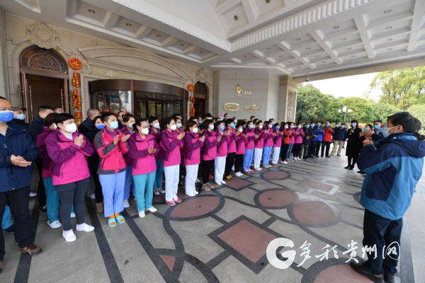 慰问与鼓劲让医疗队员们深感振奋。全体人员齐声高喊:“贵州鄂州,风雨同舟,战胜疫情,不辱使命!”“我们一起努力,在全国这场战疫‘大比武’中交出漂亮的贵州‘答卷’!”