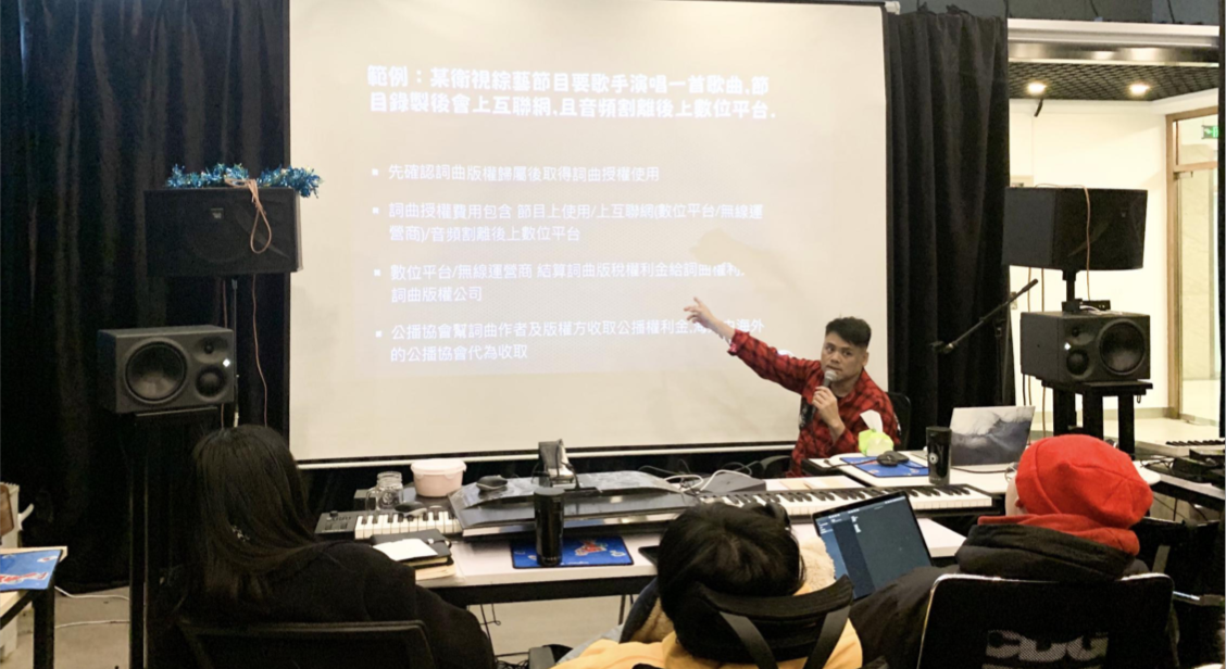 课上,徐老师就“音乐版权”问题展开了讨论。首先普及了一首音乐作品的版权架构,为了方便学员们的理解,徐老师举了学员在未来演绎事业中可能会遇到的情况,进行详细的说明,比如:某卫视综艺节目要歌手演唱一首歌曲,节目录制后会上互联网,且音频隔离后上数位平台,应该如何处理。徐凤仪老师语言幽默,干货满满,时不时穿插一些趣闻轶事,将版权问题分析的明白透彻,为学员们入圈奠定了扎实的基础。