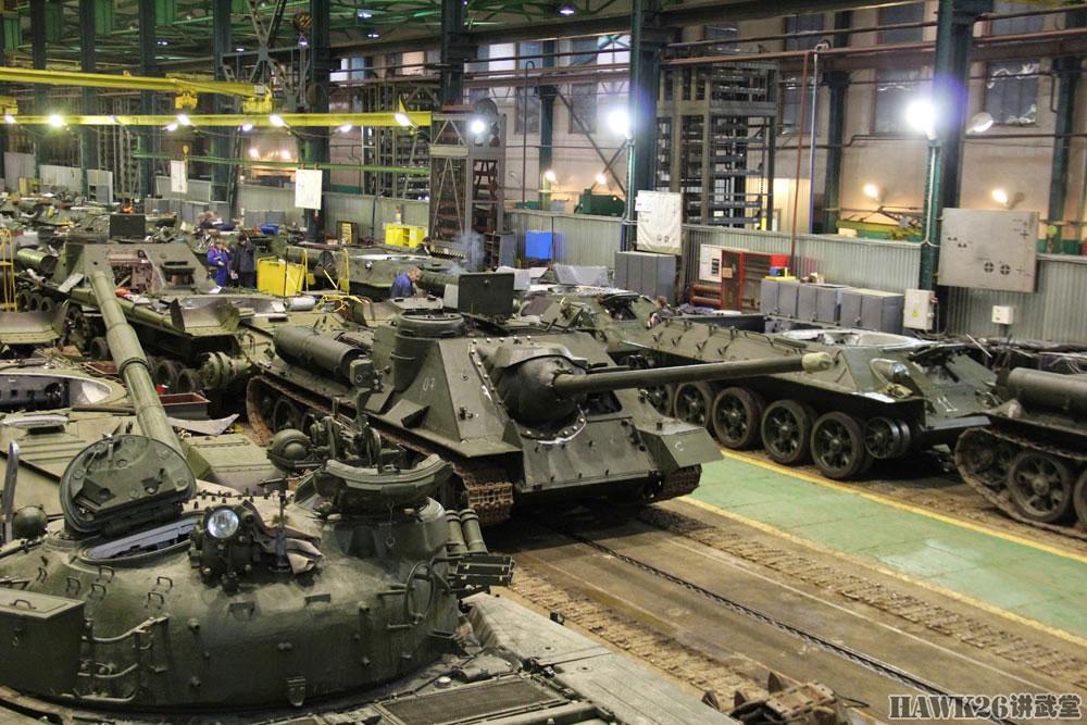 尽管多年前,这座工厂已经不是军事单位,但依旧可以看到军人出现在车间内。奇尔科夫表示,这是军代表,他们负责产品质量和交付日期。企业的质量控制是双重的,工厂员工在装备组装的每个阶段都进行严格检查,只有检测合格才会进入下一个生产环节。这座车间内,不仅可以看到正在修理的T-34/85坦克,还可以看到SU-100自行反坦克,以及俄军现役的T-72主战坦克。