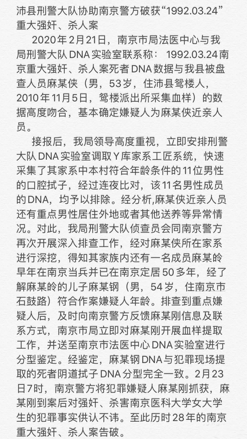 1992年发生的南医大女生被杀案告破,破案立功的果然还是基因刑侦技术,还是近些年发展起来的分子生物学。