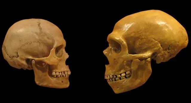 现代人与尼安德特人的头骨比较