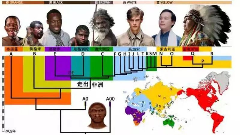 黄种人、白种人走出非洲的时间要比棕色人晚了近4万年。 但他们的扩散速度很快,只用了2万年的时间就到达东南亚。