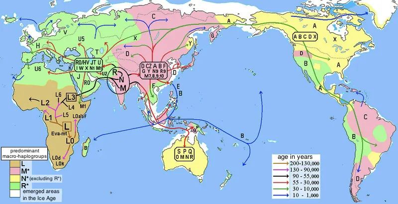 只有基因是不会说谎而且信息量巨大的,通过对当代人群染色体、线粒体、突变的标定分析,就能够描绘出人类基因如何传播、在什么时段变异,就等于描绘出了人类繁衍、迁移、演化、扩展的历史。