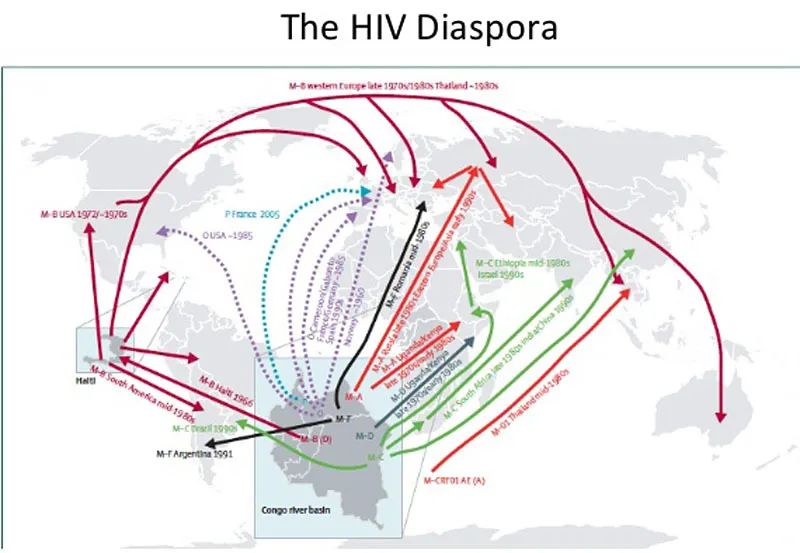 由于RNA病毒都基于易错的RNA进行复制,因此特别适合分子流行病学分析方法。 上一篇几乎用整篇的篇幅来描述人类发现、追溯艾滋病毒的35年历史,看一看所谓的“0号病人”的真相被改写、延展了多少次。