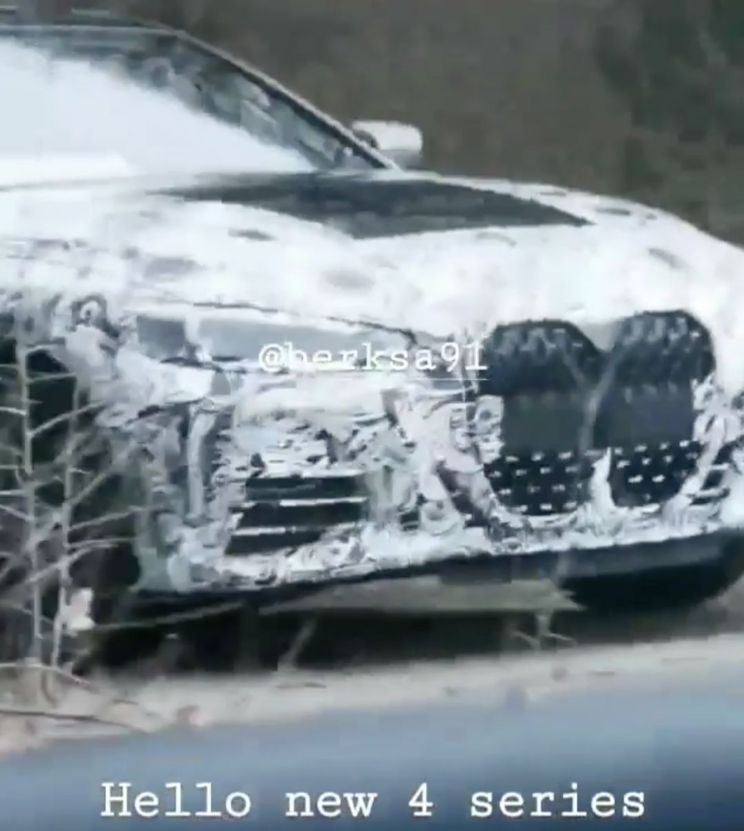 最近国外有人在路边拍摄到全新一代宝马4系路试车,全身贴满伪装,但是巨大的双肾出卖了它的身份,下面是现场拍摄的视频: