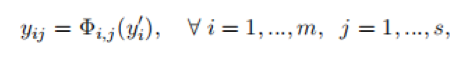 其中, 表示固有feature maps中的第i个特征图, 表示对第i个feature map进行的第j个线性变换,也就是说,某一层feature map可能对应多个线性变换,得到多个变换结果。在变换的最后,还需要增加一个同等映射,也就是将固有的feature maps原封不动的叠加到变换后的feature maps上去,以此保留固有特征中的信息。通过上式,我们可以得到经过Ghost模块后的n维特征图Y=[y11,y12,...,yms],n=mxs,示意图如下: