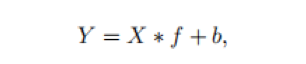 其中,*表示卷积操作,b是偏置项,此时得到的特征图Y维度信息为[h’ x w’ x n],需要的卷积核f维度信息为[ c x k x k x n ]。