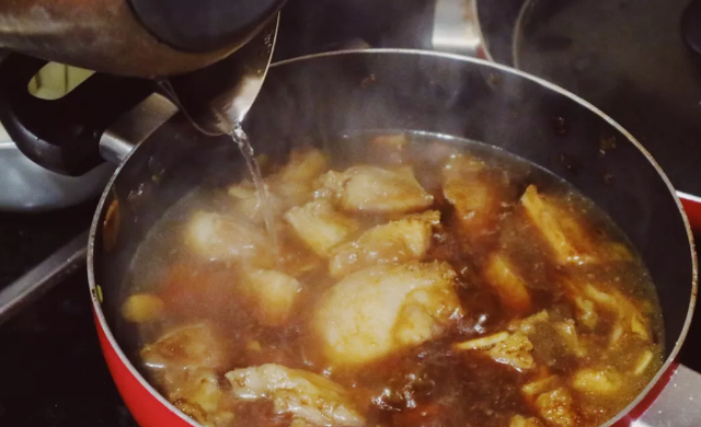 2、加水时一定要加沸腾的开水,这样肉在焖煮过程才会变松软,加冷水会变得紧致。