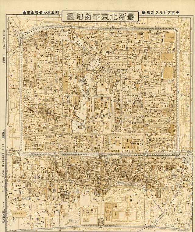 最新北京市街地图,比例尺:1比15000,东京Atorasushasa社刊。