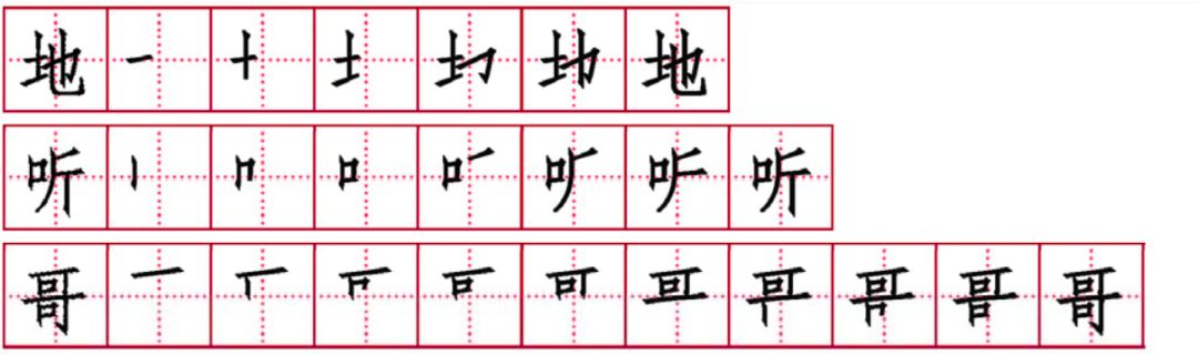 “行、很”字,注意左边是“ 彳”,不要写成“亻”。