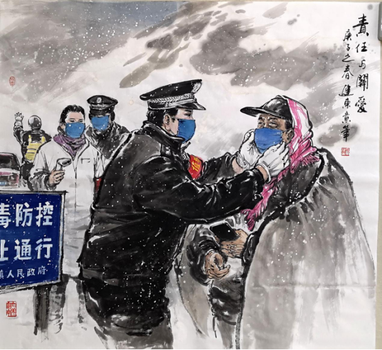 自从新冠病毒的疫情肆虐武汉并漫延到全国,党中央和全国人民众志成城,共克时艰,全国一盘棋,令人感慨。孙建东老师作为一名有社会责任感的文艺工作者,用自己手中的画笔,致敬战斗在抗疫前线的医护人员,助力这场全国性的抗击新冠病毒疫情的战争早日取得全面胜利!天佑中华,我们必胜!