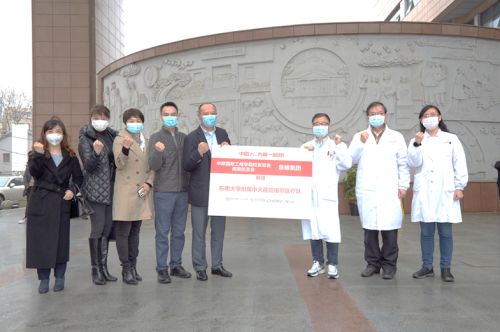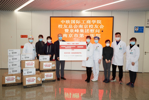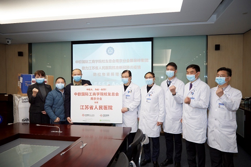 2月26日,中欧南京分会向江苏省人民医院捐赠135万元,用于270名出征湖北的医护人员每人补贴5000元,同时捐赠包括胶条防护服30件、医用防护服560件,防护手套800只,红区护目镜584副在内的紧急医疗物资。