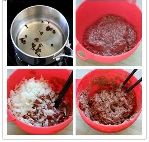细微小语:1.门钉肉饼一定是用牛肉,咬下去是多汁的,有点像汤包,因此一定要打油,打汁水。