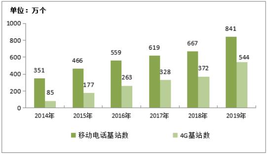 统计公报数据显示,2019年我国网络基础设施能力不断夯实,全国净增移动电话基站174万个,总数达841万个,其中4G基站总数达到544万个。