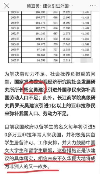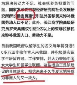 这面有一句,大力鼓励中国女大学生和留学生联姻。这句话应该是所有矛盾的汇集点,为什么要让我国的女大学生嫁给外国人?