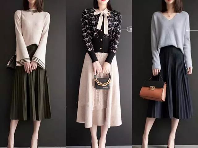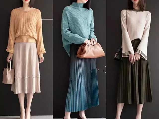 我们在搭配半身裙时,一定要懂得配色,这个非常重要!这里告诉大家一个很简单的方法,就是选择同色系的搭配,整体会显得非常协调,同时也不会出错,而且还带来十足的高级感。雾霾蓝百褶裙,很清新文艺,选择一件同色系的湖蓝色毛衣搭配起来,让人感觉特别清雅,非常适合聚会穿,温柔而有女人味。