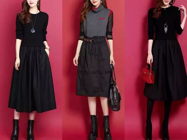 秋冬的季节,我们的衣橱里一定要有件黑色连衣裙,简直太百搭了,无论是搭配大衣或是羽绒服都可以轻松搞定。黑色连衣裙,修身一些的针织上衣与蓬蓬半裙的拼接,显得腰身非常纤瘦,微微的蓬蓬裙型,可以藏住我们的小粗腿和大屁股,非常适合微胖的女生,超级显瘦哦,穿起来也格外显优雅气质。