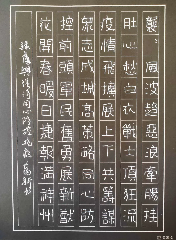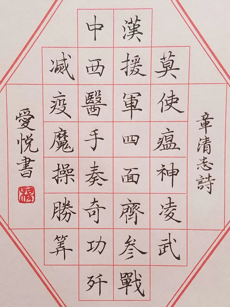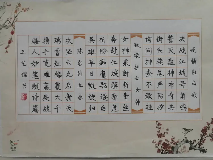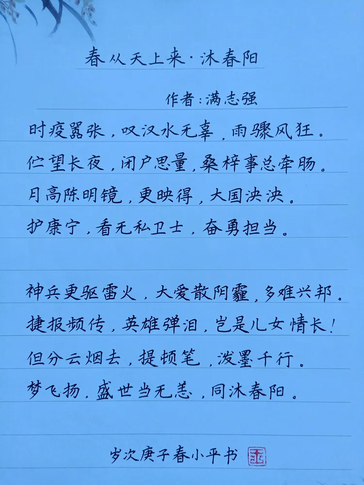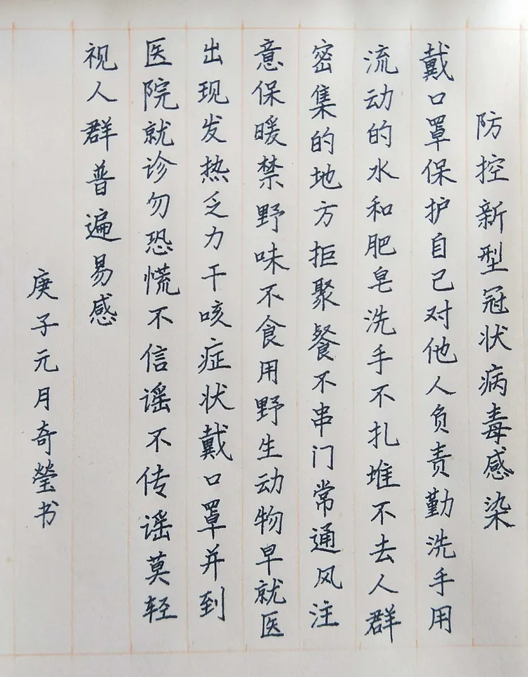 疫情期间,广大硬笔书法爱好者书写抗疫防毒诗就更显意义非凡!写吧,我们要用墨水汇织成天网,疏而不漏,让病毒无处逃窜!