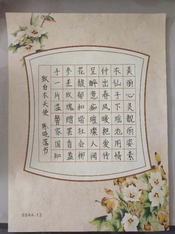 硬笔书法就像一朵鲜花,你爱它,我也爱它!一幅好的硬笔书法作品会使人赏心悦目,一手好字会让你受益终生。文章虽好,书札为先。我们要从小养成写好字的习惯,写作业要用规范而整洁的字体,答试卷要用漂亮且秀气的硬笔字。硬笔书法有严格的书写规则,我们学习硬笔书法既可巩固所学知识,又可陶冶情操。优美的硬笔字可以让老师愉悦的批阅,得分会更高!