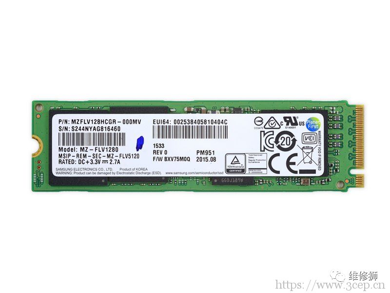 █ 唔,做得大气了芯片也多了。这块128GB三星PM951固态硬盘由以下部分组成: