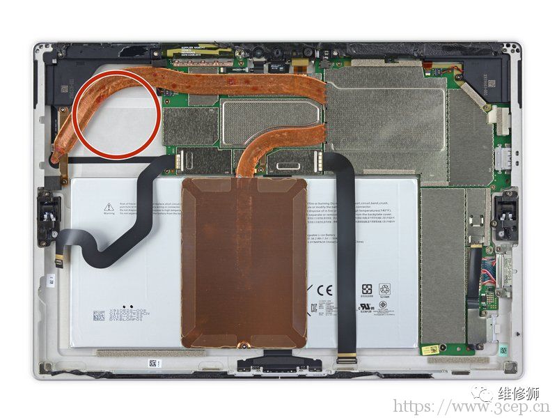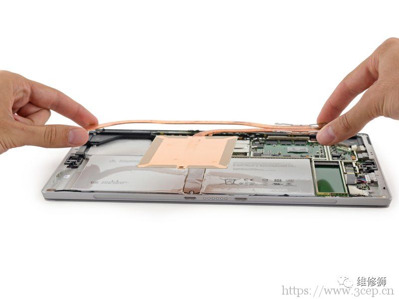 ◆Surface Pro 4的散热系统由加长的纯铜热管和用于增强散热的一片硕大铜片组成,无不在炫耀它们至上的工业设计水准。