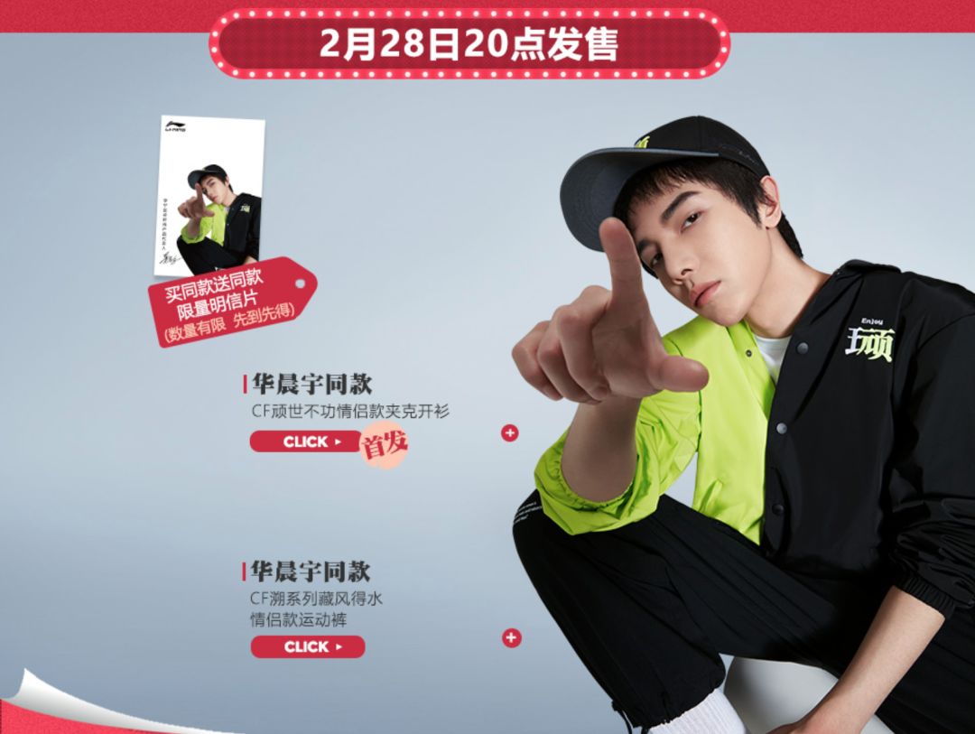 这次签约的意义有多重要?要知道,这是李宁近年转型潮流时尚品牌以来,所正式签约的第一位「运动时尚产品代言人」。但是从李宁目前的营销宣发来看,他们找华晨宇就打算做一件事,那就是:「卖!卖!卖!」