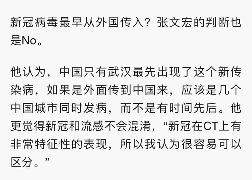 而29日,张文宏医生在接受《中国日报》采访时又说,病毒是否最早从外国传入?张文宏的判断是No!