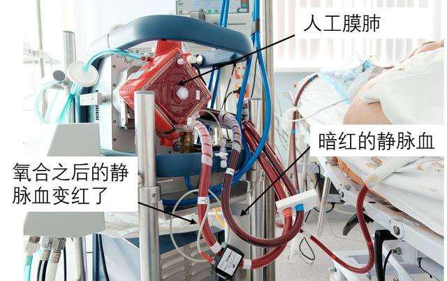 其工作原理是将患者的静脉血引流至体外,经过ECMO循环后,排出二氧化碳、补充氧气,然后再泵回体内,同时具备辅助血液循环和呼吸的两种功能。这种机器能够维持危重症患者生命,为救治争取更多时间。