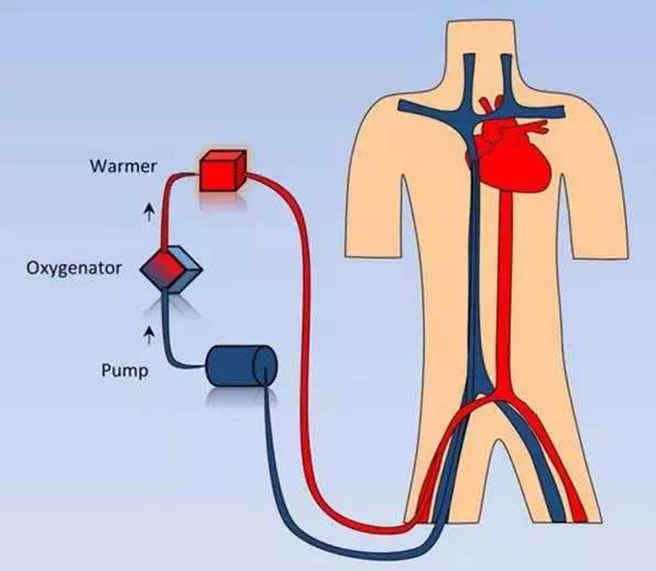 一般来说,使用ECMO治疗,需要从患者大腿静脉将血液引出,体外循环之后再泵入大腿动脉。