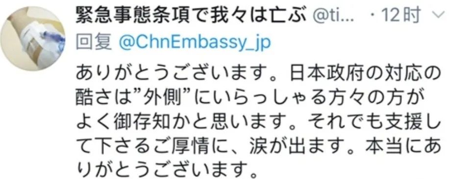 …平时,日本有一部分人总是恶意诽谤重伤贵国,但我必须在此对于贵国的暖心援助郑重地表示感谢。让我们一起度过这次难关吧!