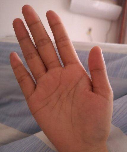 一般人只有三条主线纹,而这个手相中有双重智慧线,为人聪明,智商高,目光长远,有主见有想法,既能做到大胆创新,又能谨慎守成,有很精明的头脑来发展事业,但是事业起始线浅淡末端不显,在中年时期事业会发生一些波动,遇到坎坷,很容易导致事业失败,需要注意中年时期事业的变动,做好准备,预防生变,手掌有个小元宝纹,财运还是有的。感情线断开,是属于最坏的一种相理,感情之路很坎坷,夫妻之间感情破裂,争吵的几率大,很大的可能会出现离异的现象,一定要多沟通交流,互相理解包容,改善不好的婚姻运势。
