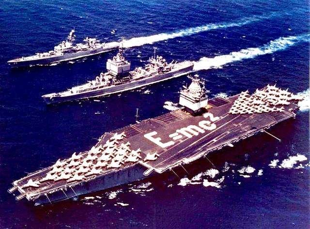 执行全球航行任务的“全核动力舰队”,最上为“班布里奇号”核动力巡洋舰