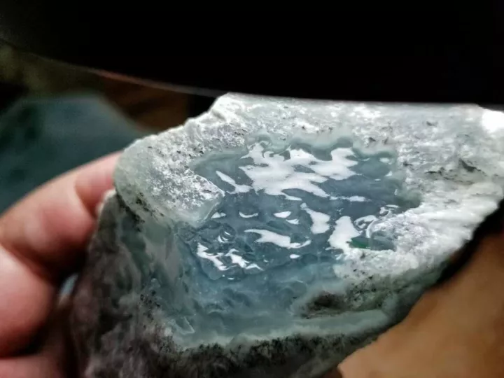 冰种翡翠原石质地非常透明,可见内部交织纤维结构,微晶部份肉眼不可分辨,透明度好,棉质与结构清晰分明。但比起玻璃种翡翠原石的纯净而言,冰种翡翠原石要稍差一些,内部若有细微杂质,而冰种翡翠原石的透明度则退而居其次,虽然也很透明,但毕竟杂质稍多。