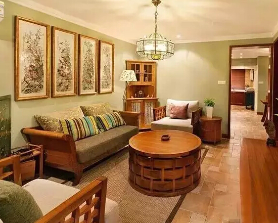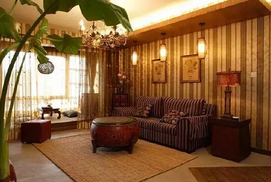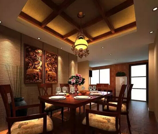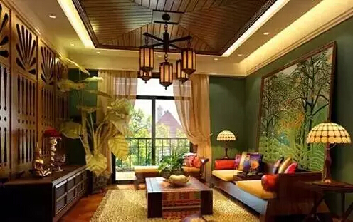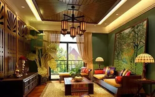 东南亚装修风格是很有民族特色的,所以饰品上可以选择藤、海草、椰子壳、贝壳、树皮等材料制作的灯饰、雕花工艺摆件,有印花的瓷器,铜质或镀金的小佛像等等,这些都具有浓烈的异域风情,可以充分的体现东南亚风情。