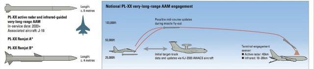 虽然在宣传材料中出现了图片,但是却没有相关的性能数据,这也是其引起关注和猜测的原因。关于PL-21的性能,目前只能从网络上的零碎信息中略知一二。PL-21应该是一种采用主动雷达等多种制导模式的的超远程空空导弹,最初出现的宣传材料中显示该导弹采用两侧楔形进气道冲压式发动机,外形结构与欧洲“流星”空空导弹类似,这也说明PL-21有可能采用的是火箭发动机+冲压发动的双重动力模式,飞行速度也会有所提升。