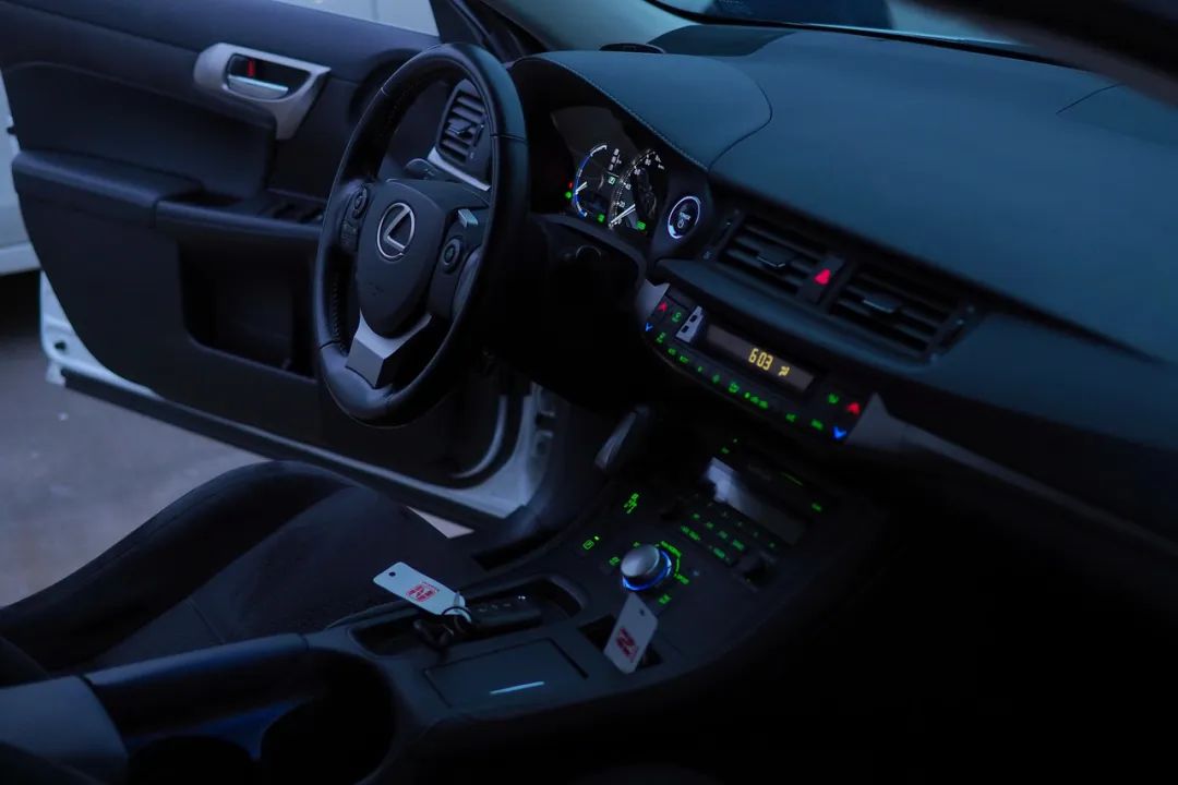 CT200h的内饰设计风格比较德式,中控台、面板、按键的质感比较赞,机械感很强。接近黑色的涂层中还掺着亮晶晶的小颗粒,这么代步的雷克萨斯也不忘营造“档次感”,赞!