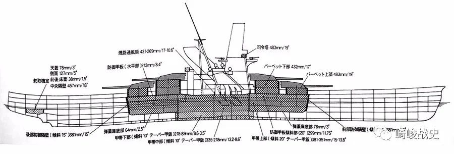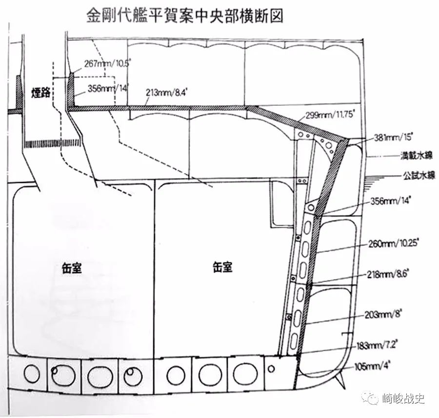 ■“金刚代舰”平贺私案的中部舰体装甲结构图。