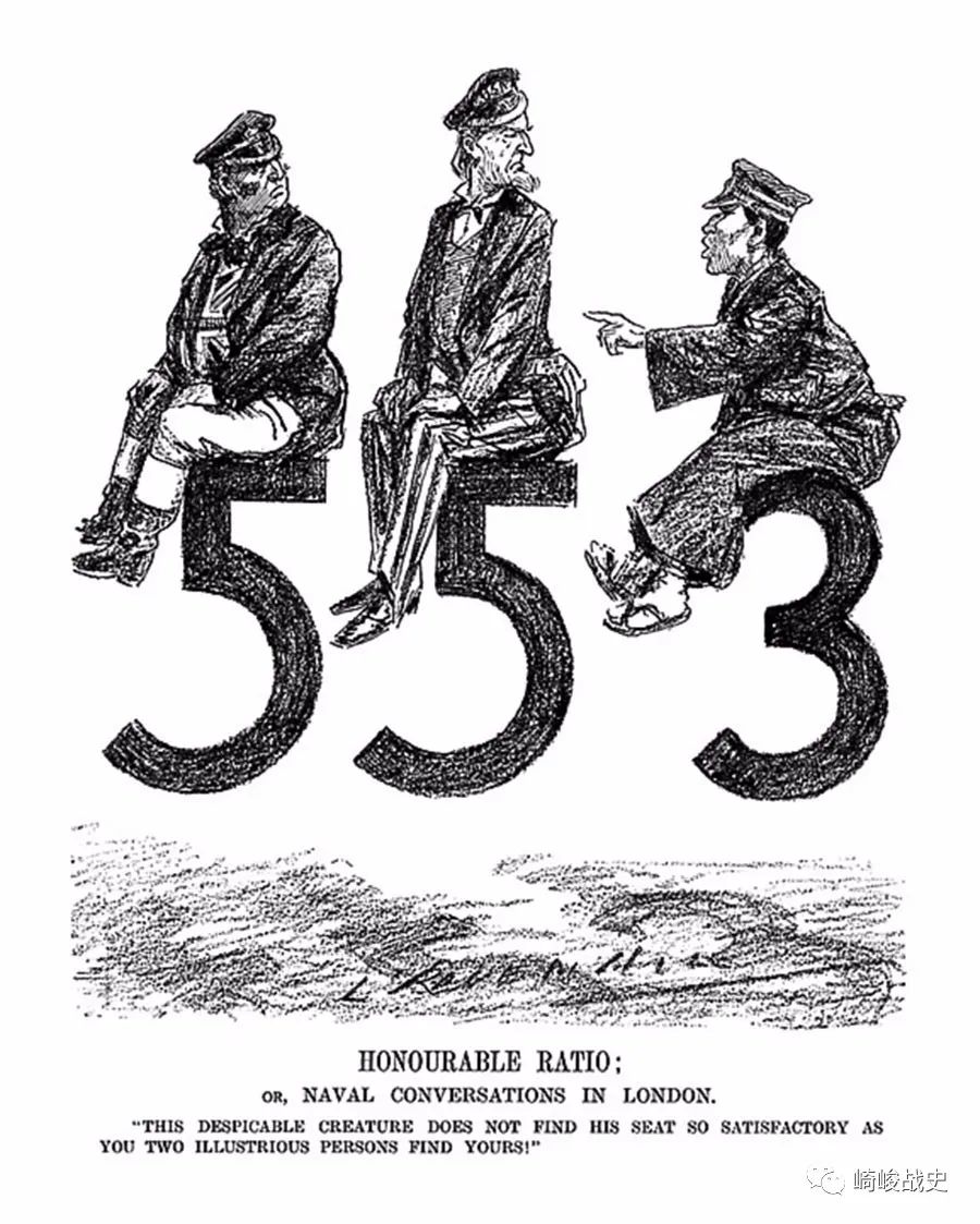 ■以1922年《华盛顿条约》为主题的漫画,表现了英美日三国的主力舰吨位比例。