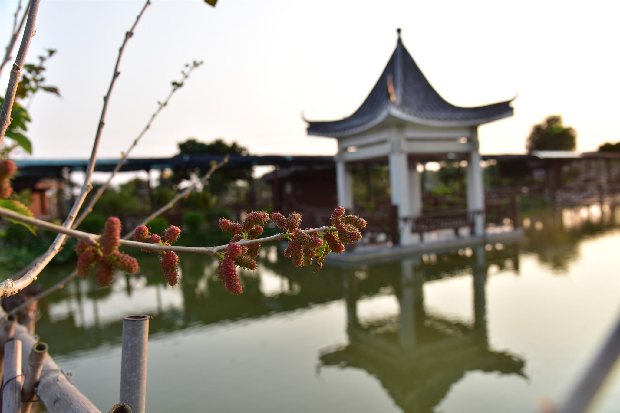 春天没有哪种水果像桑葚那样搅动我们的胃蕾,那样让我们荡漾起水乡的乡愁。在南粤名山西樵山下,有一片被联合国教科文组织誉为“世间少有美景、良性循环典范”,面积3000多亩,渔耕粤韵文化园就位于这片桑基鱼塘的核心区域。
