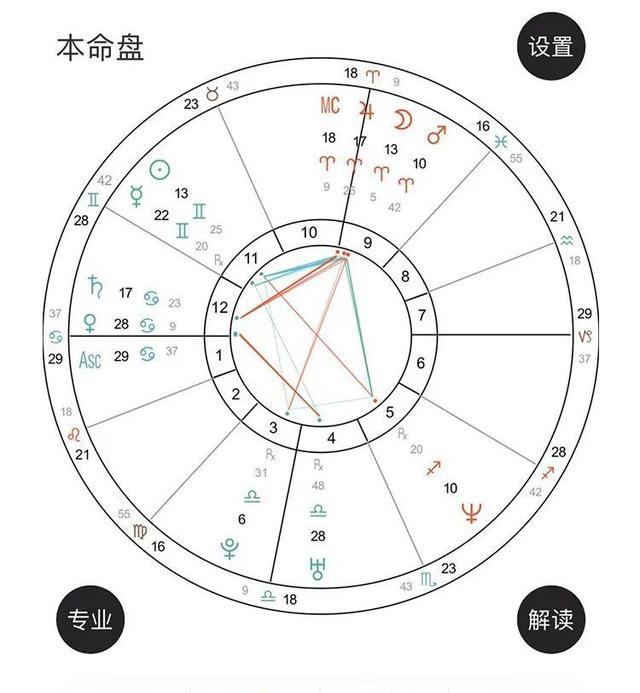 信封的四角是:太阳双子11宫、月木白羊合MC于9宫、冥王天秤3宫、海王射手5宫。