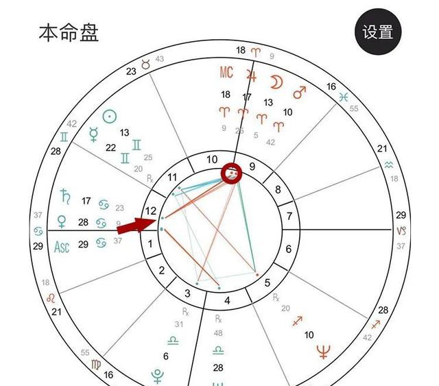 信封里唯一可被打开的一角,位于9宫的木星白羊(如下图),他和12宫的土巨蟹组成刑相位。虽然是刑相位,依然极为重要。