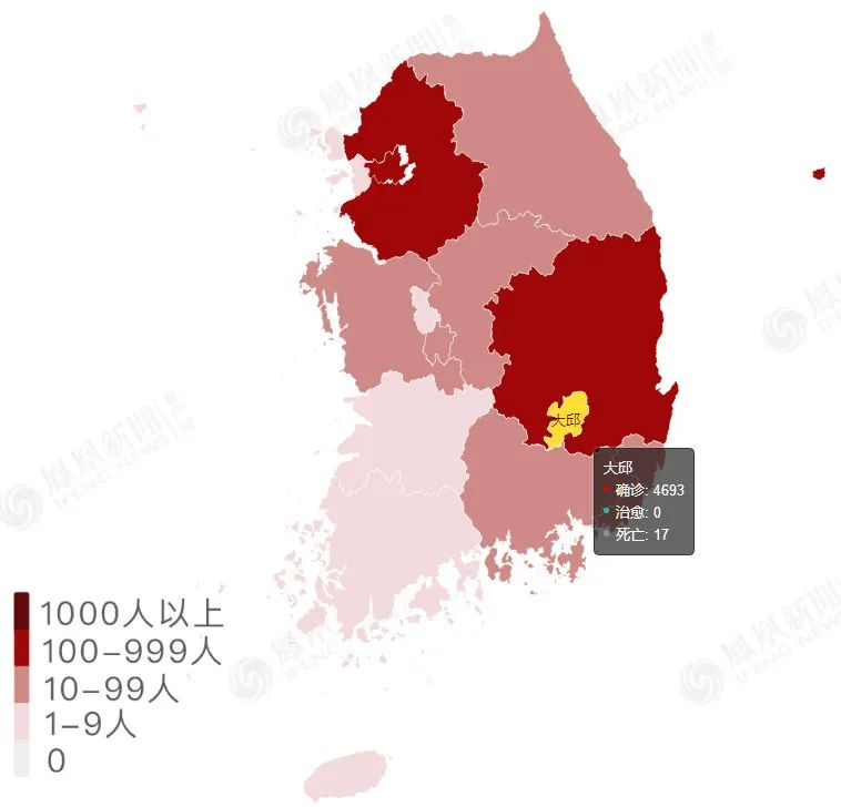 先说目前确诊最多的国家韩国。大邱就是韩国的武汉,庆尚北道就是韩国的湖北。大邱、庆尚北道患者数量分别占全韩国71.2%、14.9%,合计达86.1%。