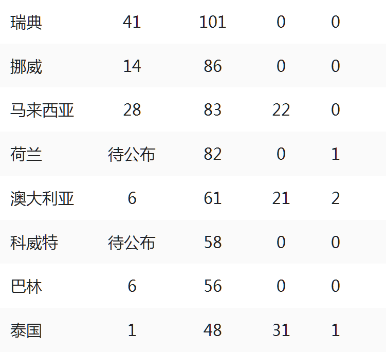 瑞典101人,新增41人,今天增幅也达到了68%。挪威86人,新增14人。