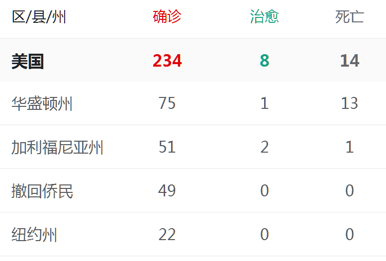 现在美国确诊234例,病亡14例。其中75个病例、13例病亡都出现在华盛顿州。